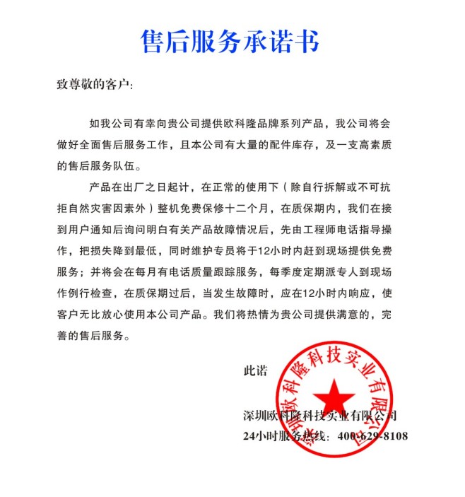質保期外售后服務成本價提供設備零部件;成本價提供維修保養服務。