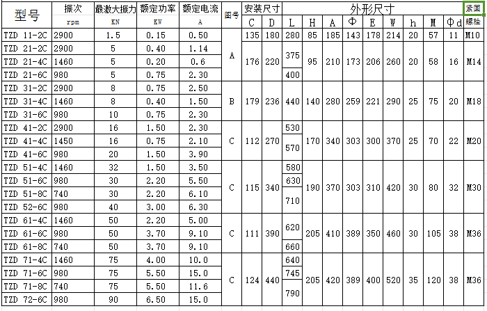 TZD振動電機為三相380V 50HZ異步電動機,封閉自冷式、可做水平、傾斜安裝。TZD振動電機在連續工作時,周圍空氣中不得含有腐蝕性及爆炸性氣體,環境溫度不得超過40度。將振動電機安裝在振動機械上時,振動電機的底腳螺栓必須緊固,每個螺母下必須加平、彈墊圈,振動電機運轉初期,由于螺栓、螺母、底座平面間的磨合,會降低緊固力,出現小的松動,故運轉初期應將電機的底腳螺栓多次擰緊,開始時每天緊固一次,兩周后每周檢查緊固一次。