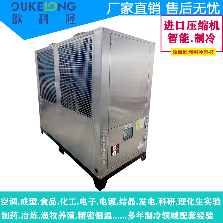 歐科隆制冷40HP風冷式冷水機是一款大功率工業制冷設備,專為重型制造和連續生產需求設計。該機型采用創新風冷技術,實現40匹(約120kW)強勁制冷量,突破傳統水冷系統限制,顯著降低安裝維護成本。
