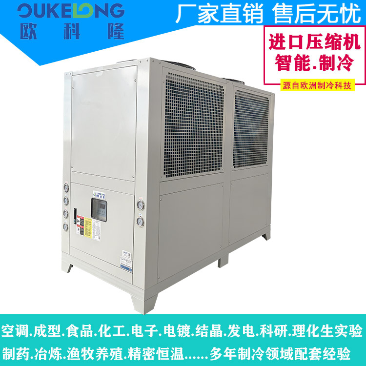 歐科隆30匹風冷冷水機組是一款高效節能的中大型商用制冷設備,采用一體化緊湊設計,制冷量達105kW,專為中型商業場所和工業應用設計。機組配備高效渦旋壓縮機(可選谷輪/丹佛斯品牌),制冷能效比(COP)達3.6以上,溫度控制范圍5℃~30℃,控溫精度±0.5℃。