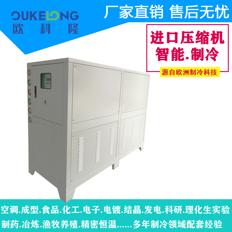 歐科隆牌冷水機全部工業(yè)冷水機組保護系統(tǒng)裝置有:溫度控制開關(guān)、防凍開關(guān)、可熔栓、高低壓壓力開關(guān)、過載保護器,壓縮機過熱保護器,壓縮機頻繁啟動保護器及異常指示燈。