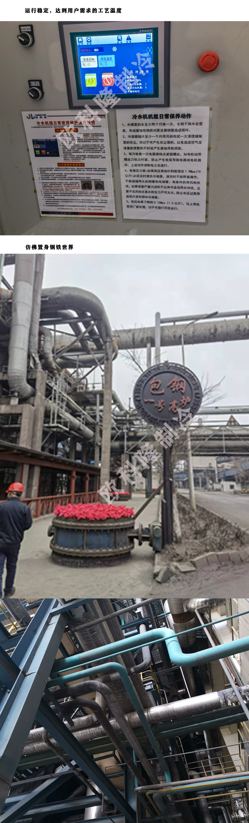 歐科隆制冷提供的冷水機(jī)組系列產(chǎn)品榮獲集團(tuán)一致認(rèn)可,由于溫控精準(zhǔn)大大的提升了鋼鐵產(chǎn)量和鋼鐵的品質(zhì)和硬度。
