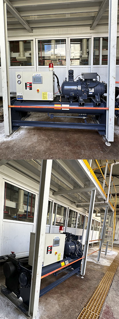 本案例是十堰二汽電鍍生產線配套耐腐蝕冷水機,該機型為耐腐蝕換熱器,因為電鍍液具有極強的腐蝕性如果采用普通材質換熱器會出現換熱器腐蝕穿孔的現象。該機組控制器為西門子1500控制器,可并入用戶整廠區的大系統,便于對整個系統的管理和操控。