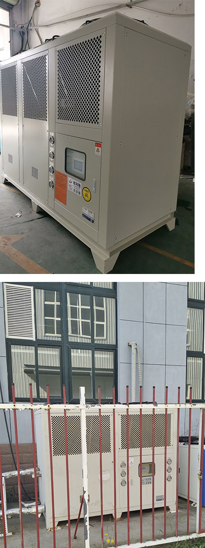 本案例是山西一家高嶺土行業采購的風冷一體式冷水機,內置水箱水泵,接上電源再接上進出水管和生產設備循環就可以正常使用了。