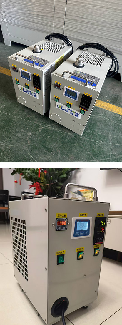 本案例為制冷量200W左右的微型高低溫液冷機組,可以制冷到5度,又可加熱到80度,應用于車載測試使用。